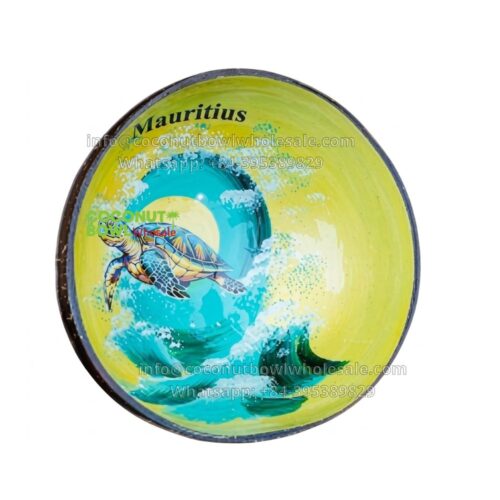 Bulk Mauritius Lacquer Coconut Bowl with Sea Turtle (CBW-0182)