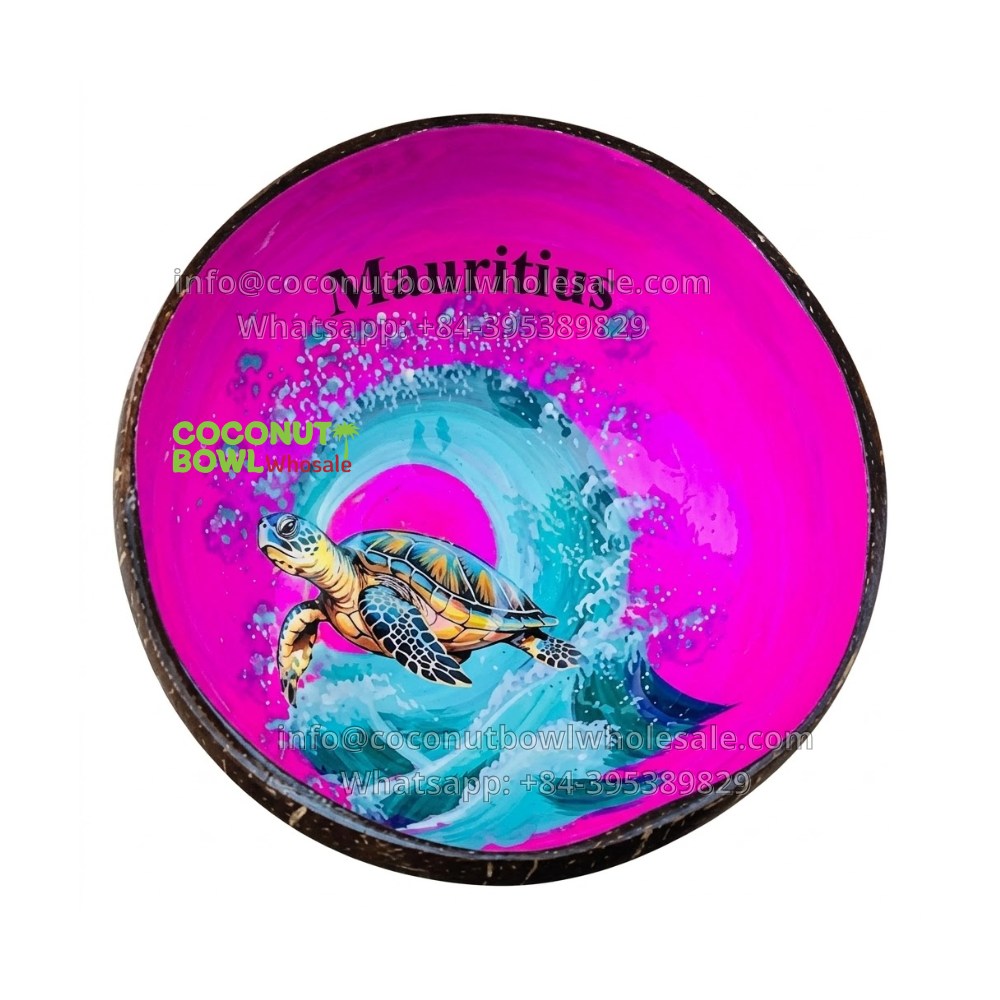 Colorful Sea Turtle Lacquer Coconut Bowl (CBW-0185)
