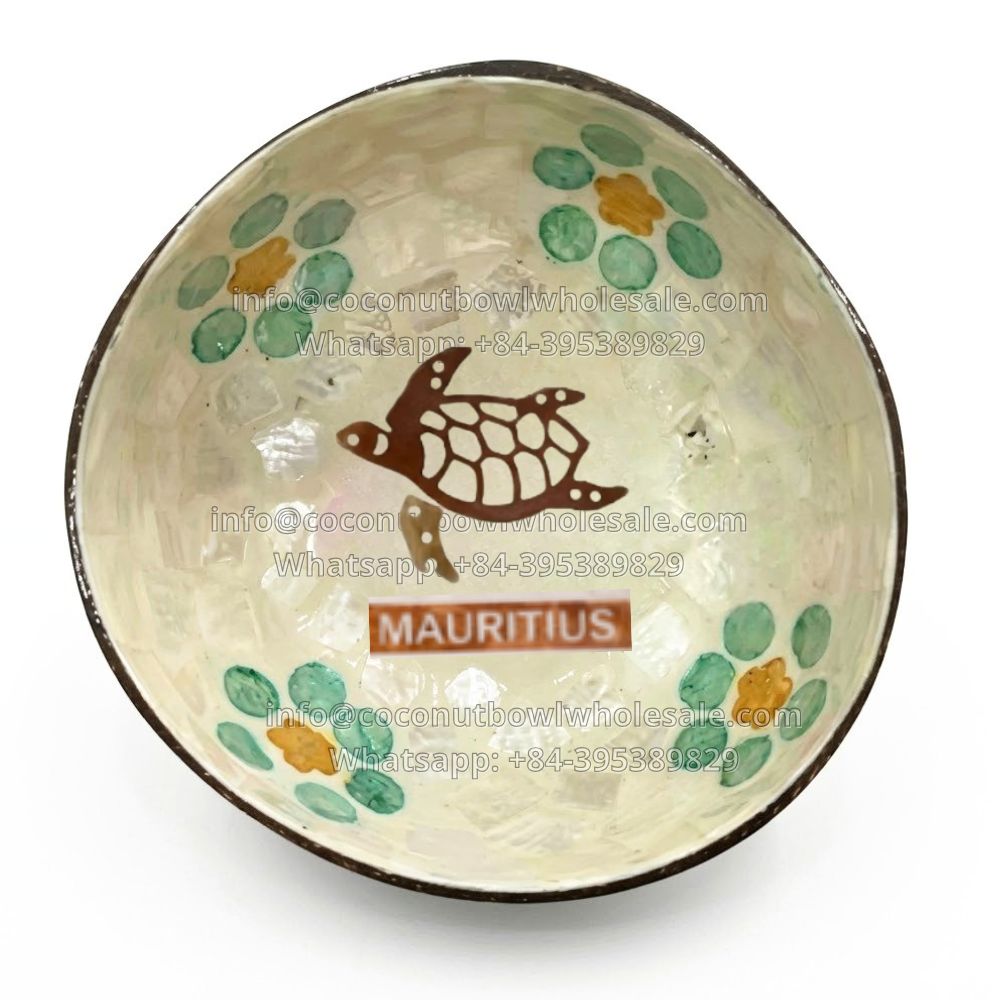 Hot New Mauritius Coconut Bowl with Turtle Mother of Pearl Inlay (CBW-0100)