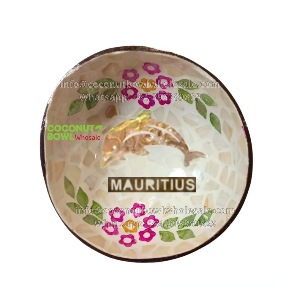 Mauritius Coconut Bowl Dolphin Mother of Pearl (CBW-0154)