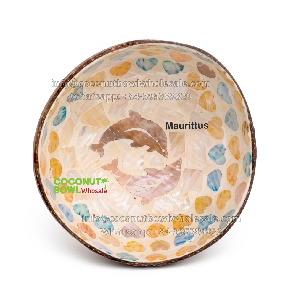 Mauritius Coconut Shell Bowl Dolphin Mother of Pearl (CBW-0142)
