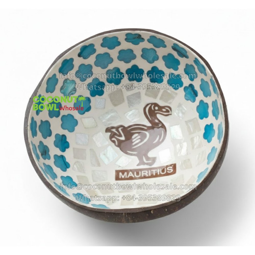 Mauritius Handmade Coconut Bowl with Dodo Bird Inlay (CBW-0131)