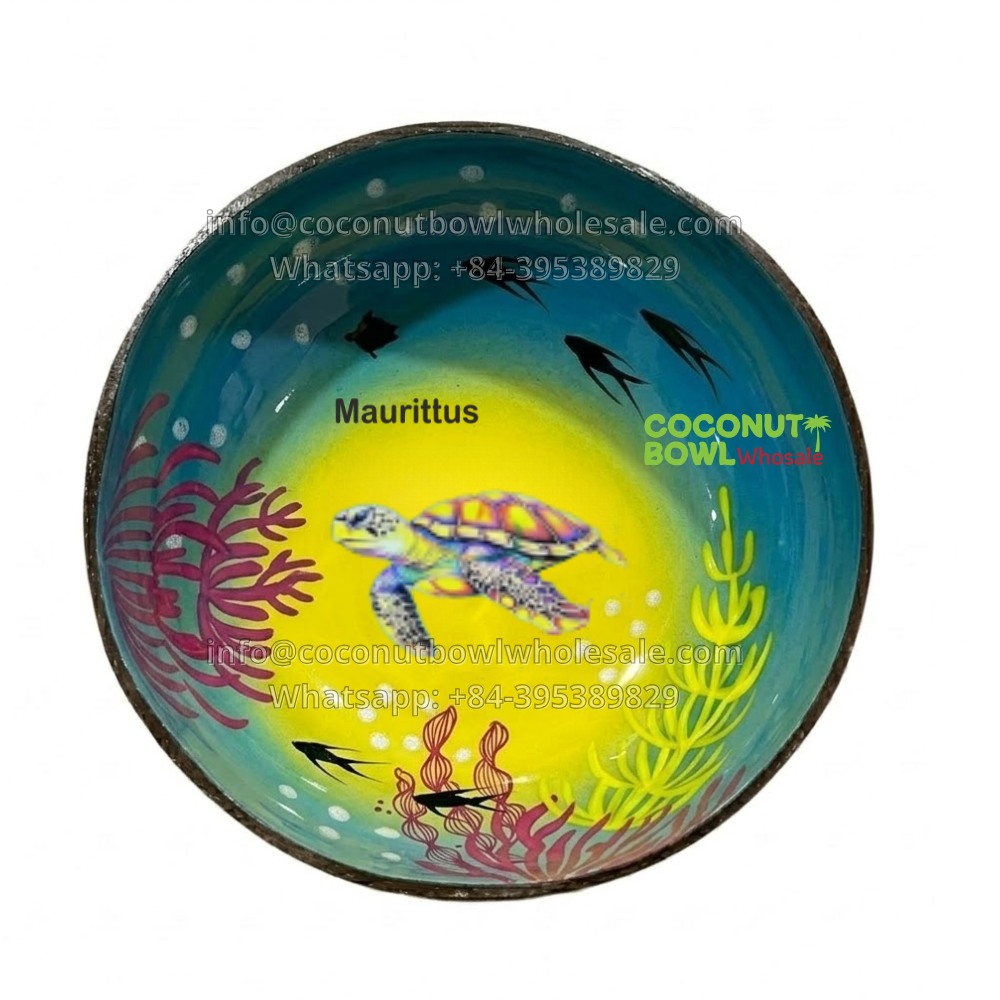 Mauritius Lacquer Coconut Bowl Sea Turtle Style (CBW-0110)