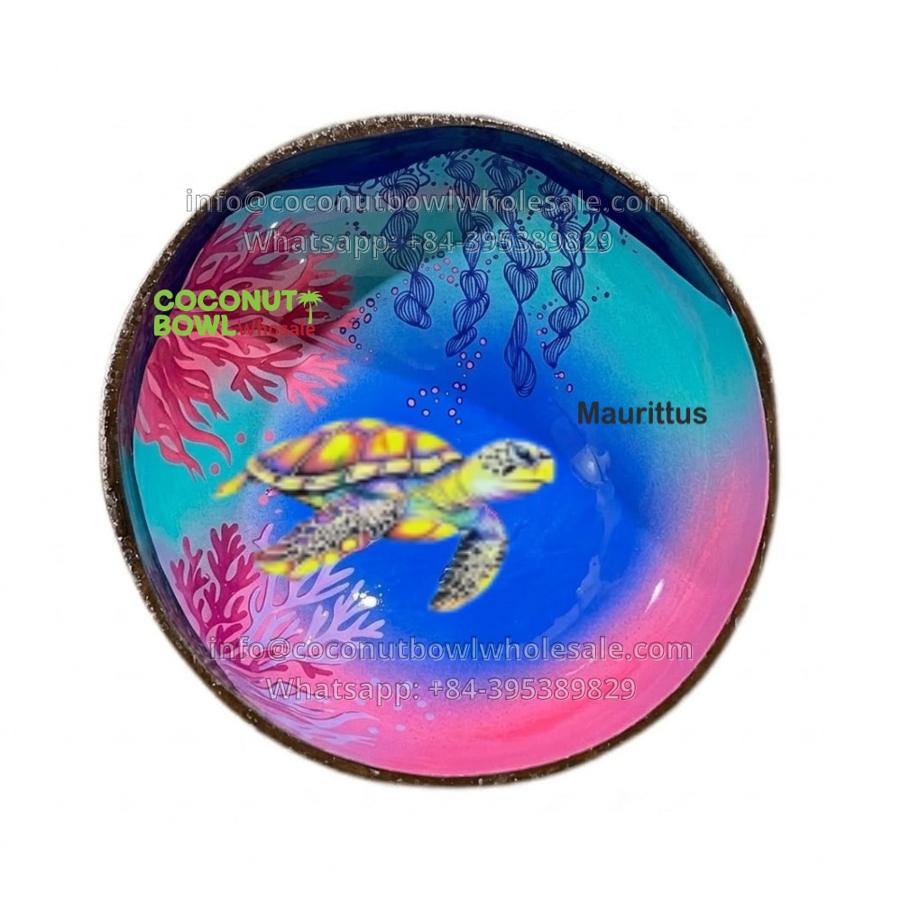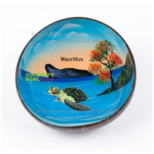 Mauritius Island Coconut Bowl with Sea Turtle Design (CBW-0105)