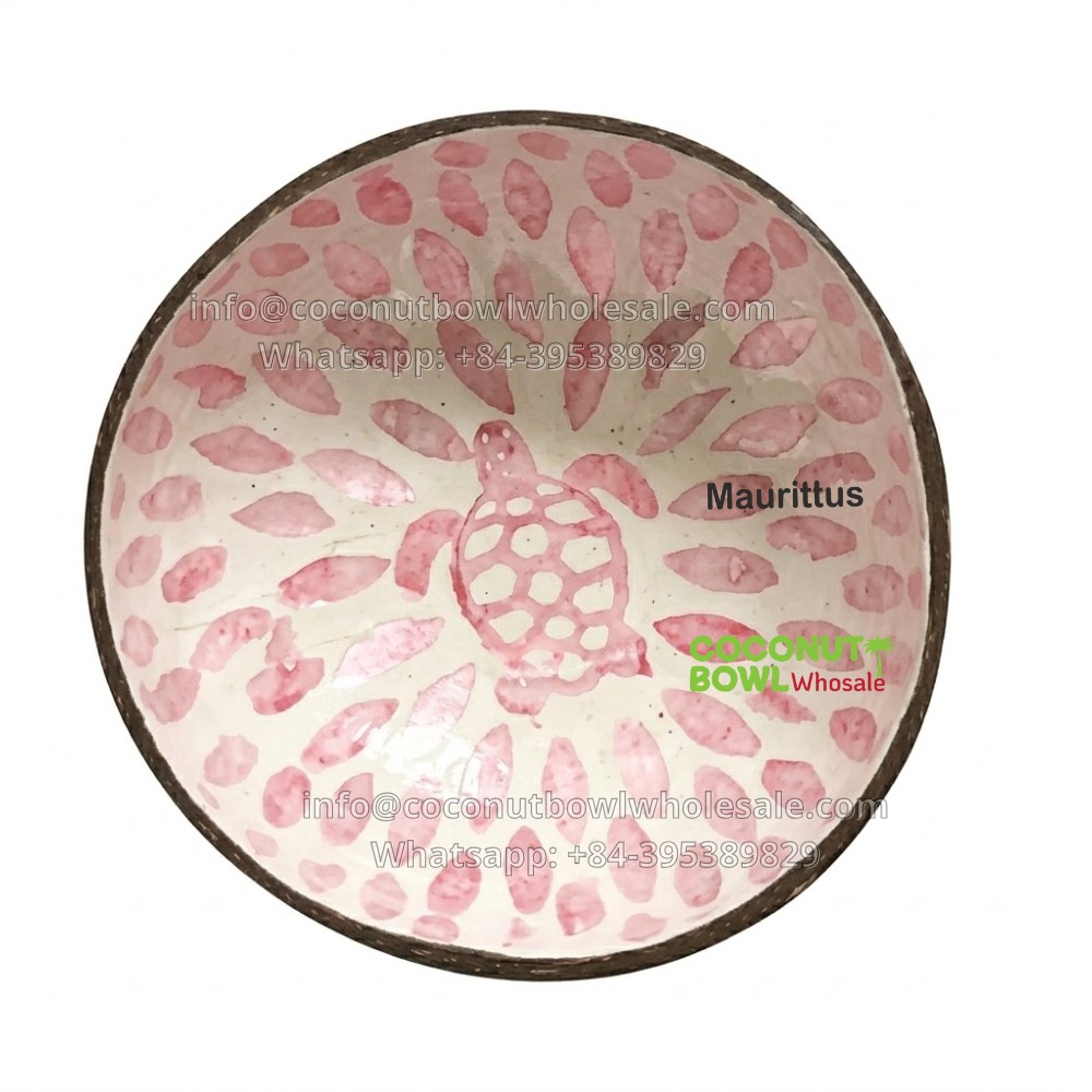 Mother of Pearl Coconut Bowl Turtle Inlay Custom Logo (CBW-0168)